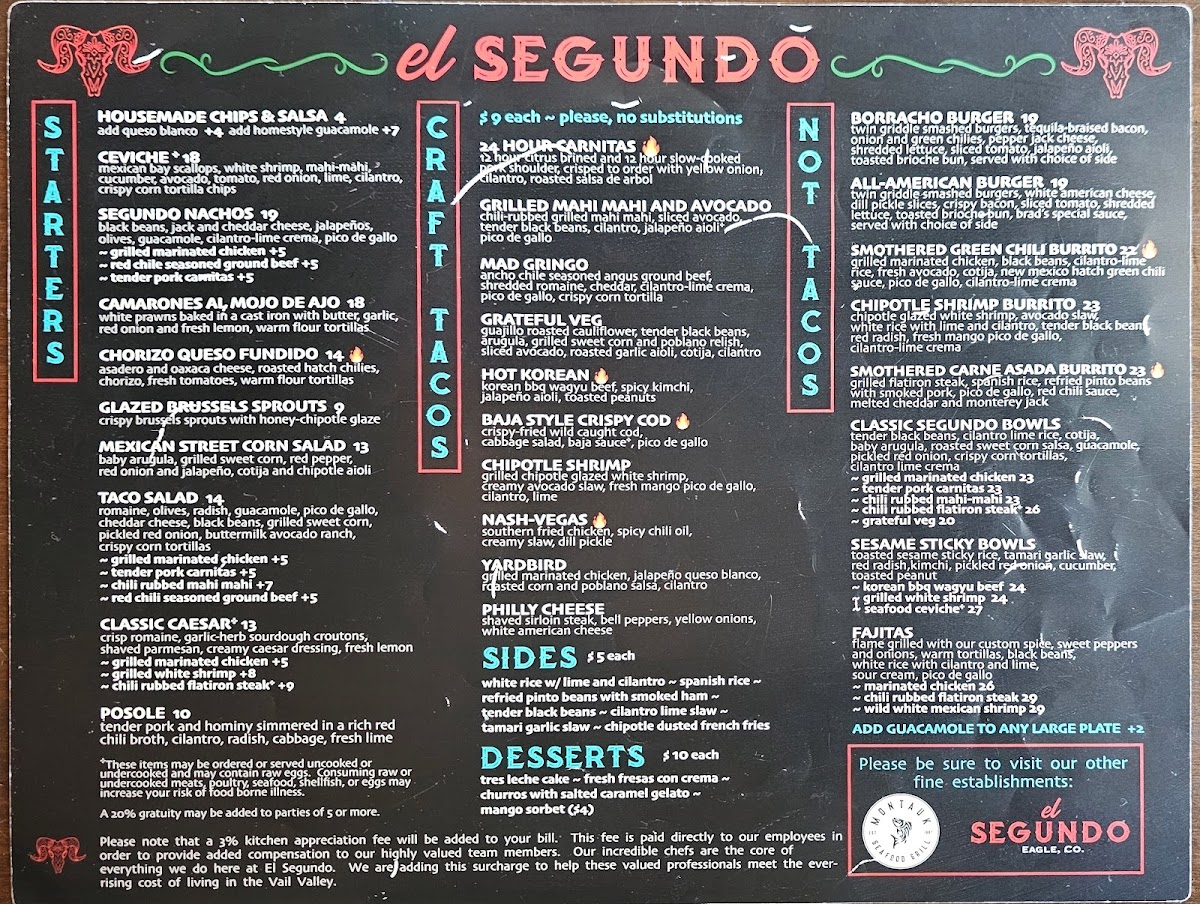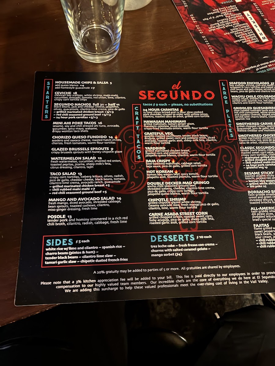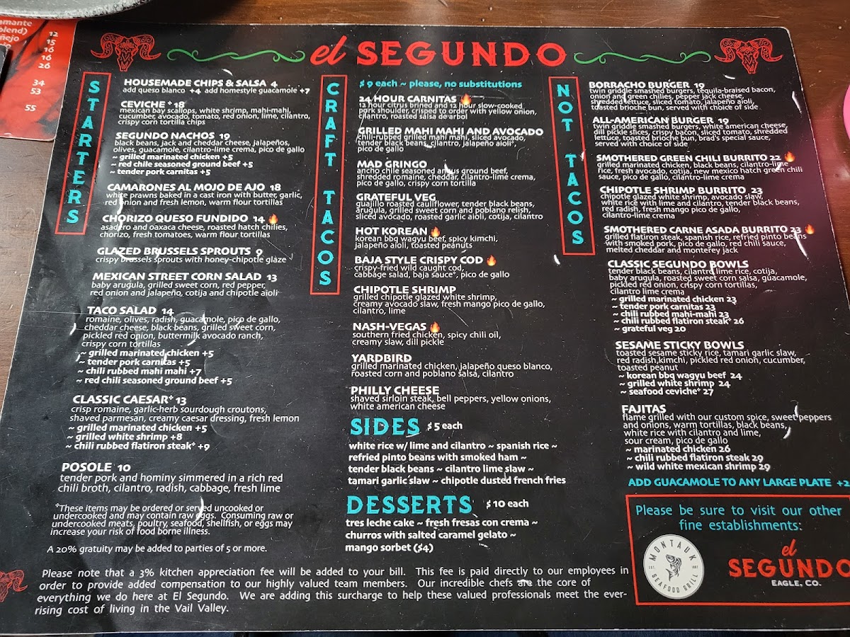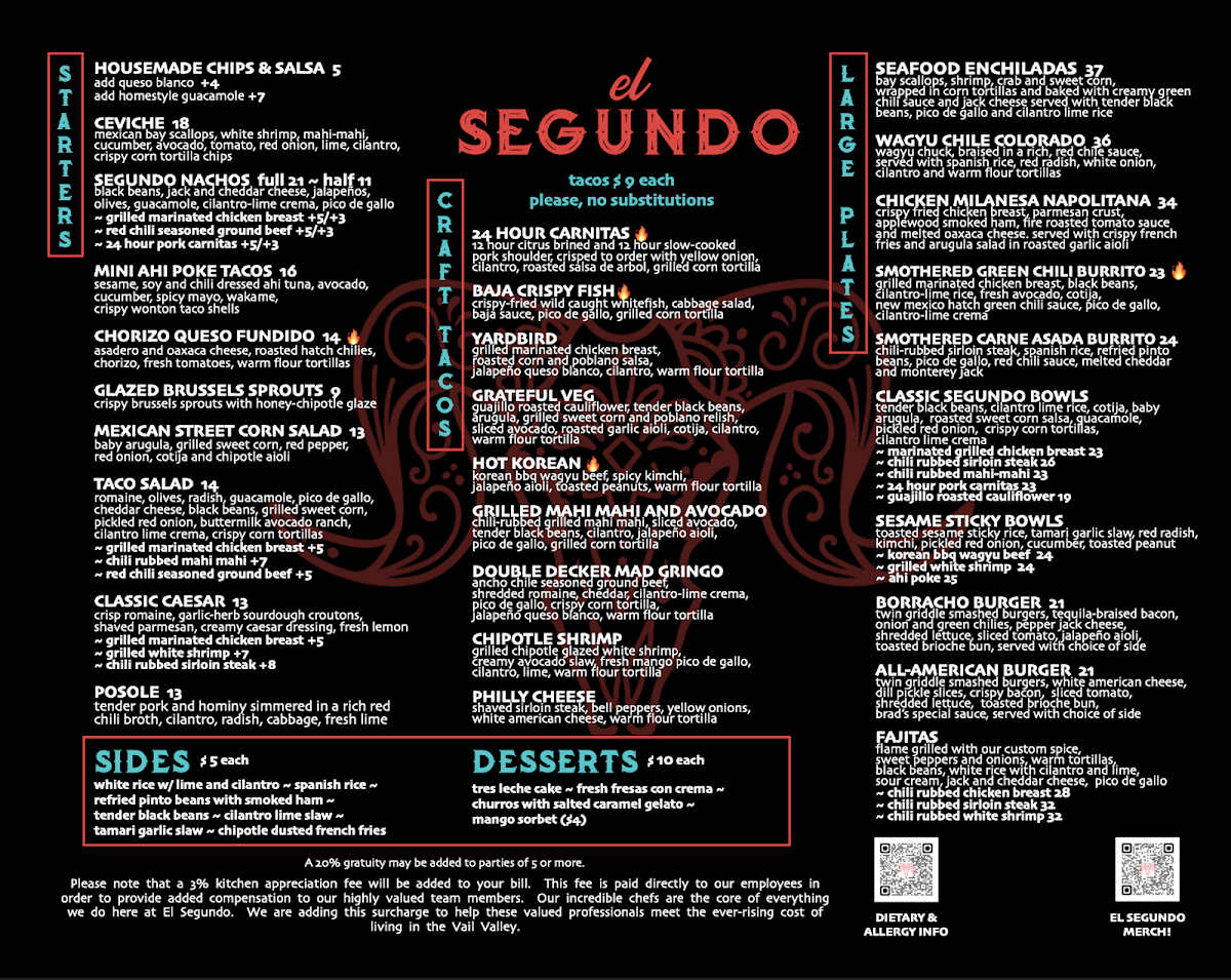 Ancho chile seasoned Angus ground beef, shredded romaine, cheddar, cilantro-lime crema, pico de gallo, crispy corn tortilla wrapped with a warm flour tortilla with jalapeno queso blanco between the shells